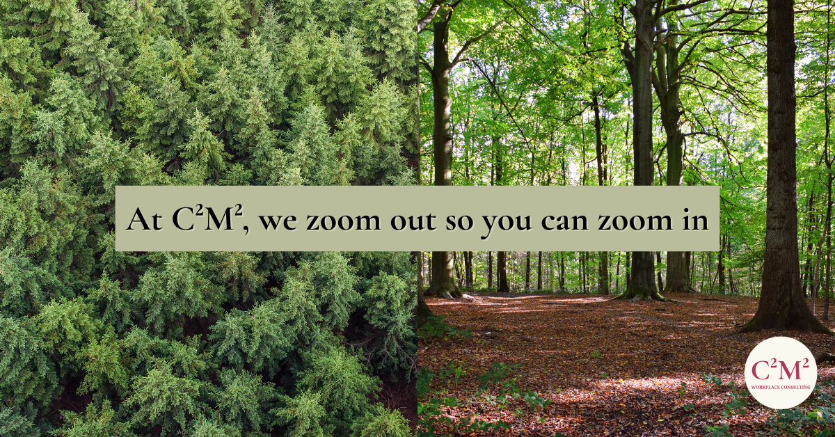 Most workplaces are tangled in the trees—too close to see the forest or the canopy. At C²M², we zoom out so you can zoom in. No blame. No guilt.