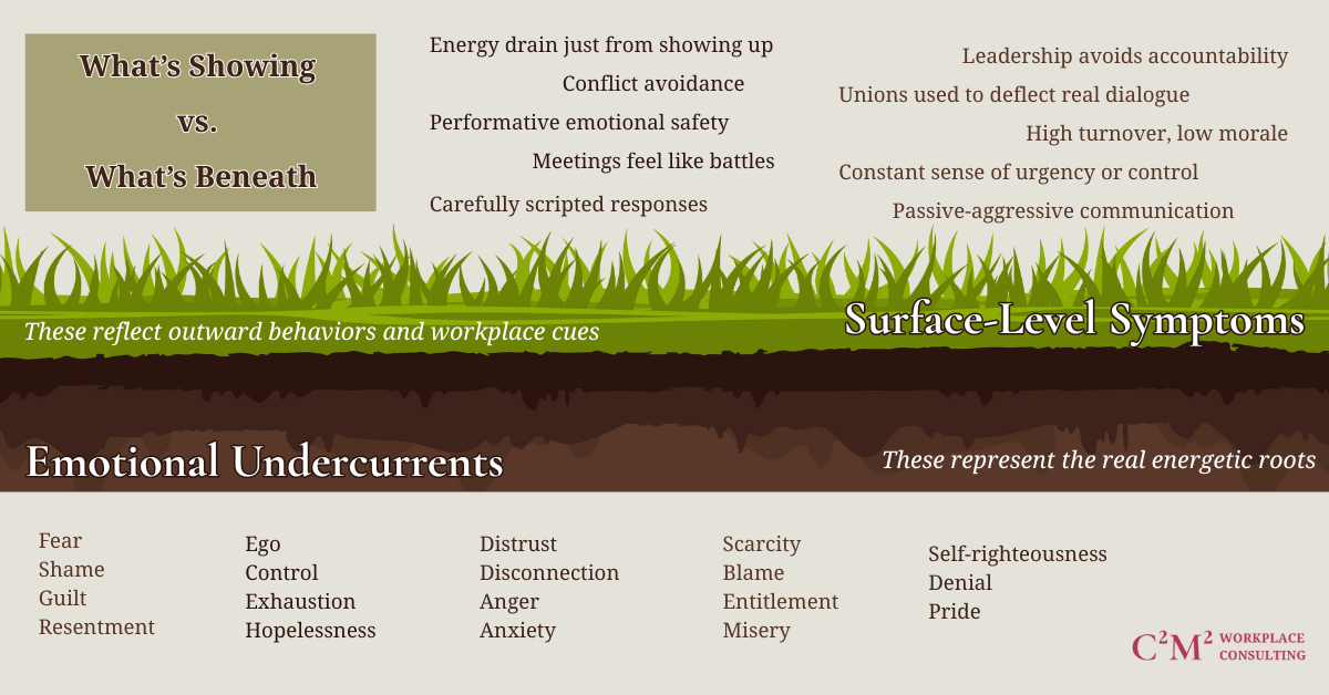This isn’t about “bad people” — it’s about the invisible energy dynamics shaping your workplace culture. Culture amplifies what lives beneath: fear, ego, exhaustion, and unspoken expectations.